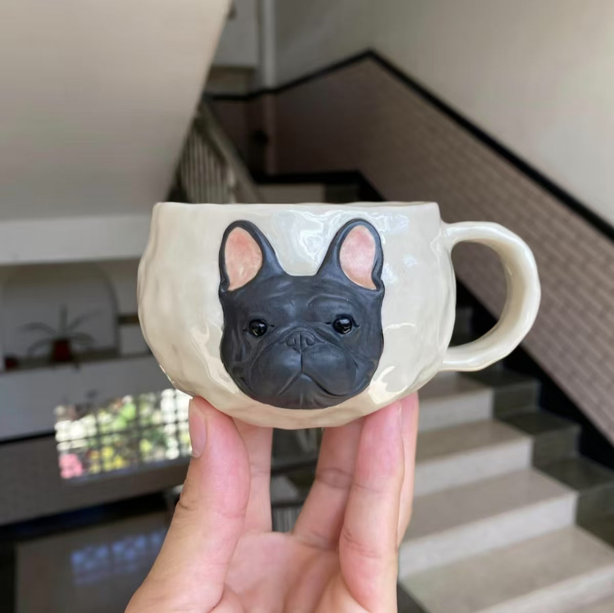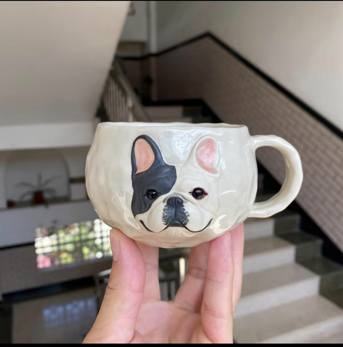 French Bulldog Handmade Coffee Mug – Creative Ceramic Art with Frenchie Design – Handcrafted Ceramic Figurines, Cups, and Collectibles